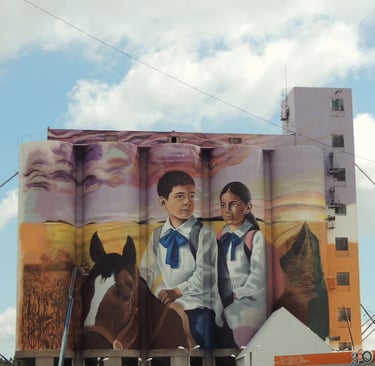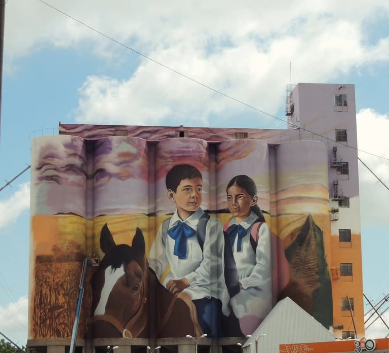 Viendo ese mural he vuelto a los caminos que cuentan historias de un pasado no muy lejano, y de un presente cada vez menos común, donde los niños y las niñas de la campaña, acompañados por hermanos y otros gurises de la zona hacen sus recorridos cotidianos.